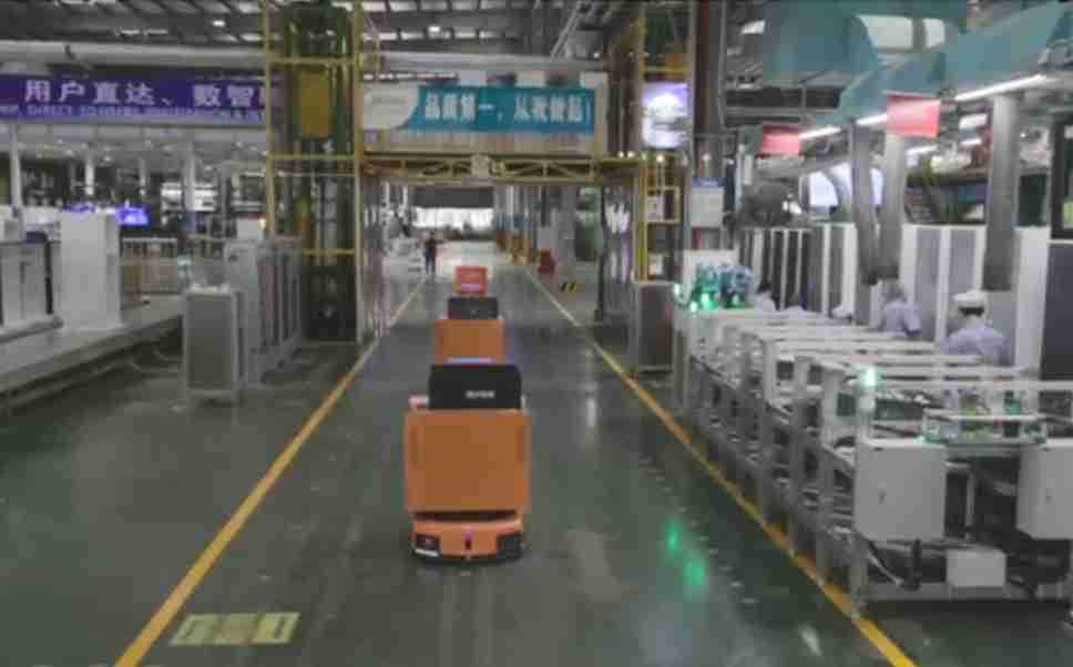 为车载冰箱物流配送打造的智能解决方案,,,包含产中物流通过潜伏举升AMR搬运至线边,,,产后成品物流智能仓储,,,流程包含产中物流智能齐套入库,,,线边安灯叫料AMR智能配送至线边,,,成品入库、、、出库,,,通过无人堆高车机器人,,智能仓储管理替代人工作业管理,,,实现更高存储、、、、更高效率、、、更具柔性化的解决方案。。。
